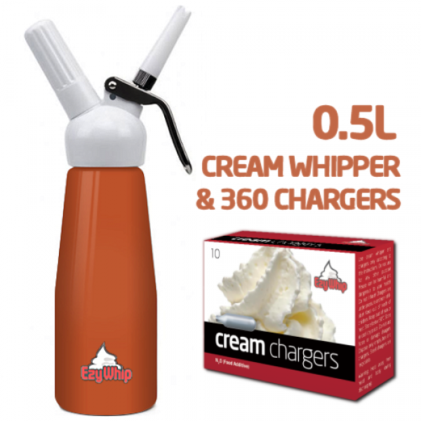 Ezywhip Cream Whipper 0.5L Orange and Chargers 10 Pack x 36 (360 Bulbs)